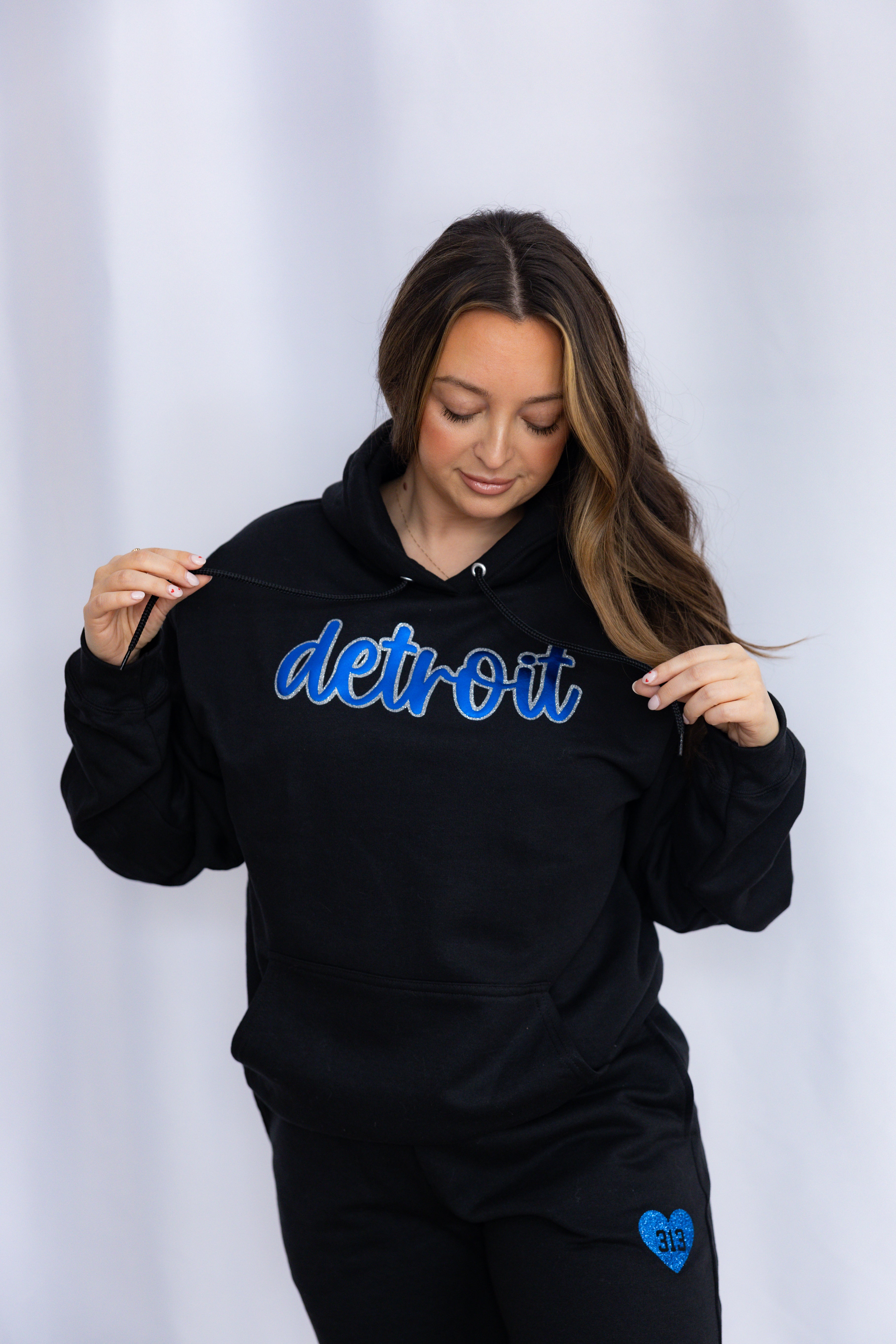 BUNDLE SALE: Black Detroit Script Sparkle + Puff Sweatsuit