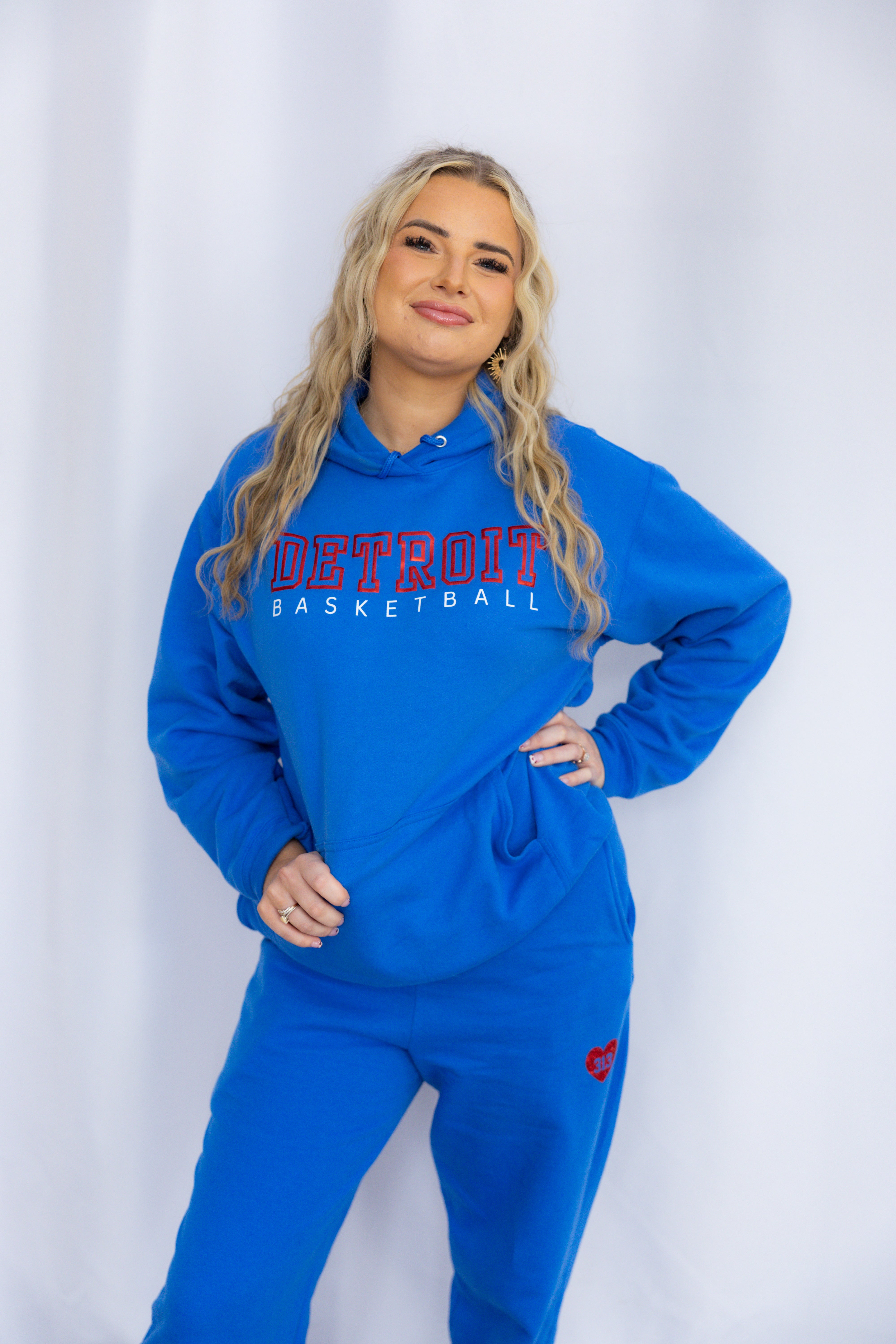 FEATURED ON FOX2: Our Brand New Minimalist Sparkle Matching Sweatsuit! This fits pretty true to size and is slightly oversized. This royal blue hoodie and jogger set brings comfort, style, and hometown pride together in one perfect look. Featuring our sparkle 313 heart logo, this set has already been purchased by multiple local influencers and on even featured on Fox 2 News!
