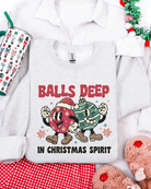 Get balls deep in the holiday spirit with the most unapologetically festive sweatshirt of the season. These two cartoon ornaments are living their best Christmas lives and taking you right along with them.