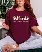 A little silly, a little wholesome, and a whole lot of cute. This “Jesus Loves You Silly Goose” tee features an adorable lineup of geese dressed in charming biblical inspired outfits, the perfect blend of humor and heart.