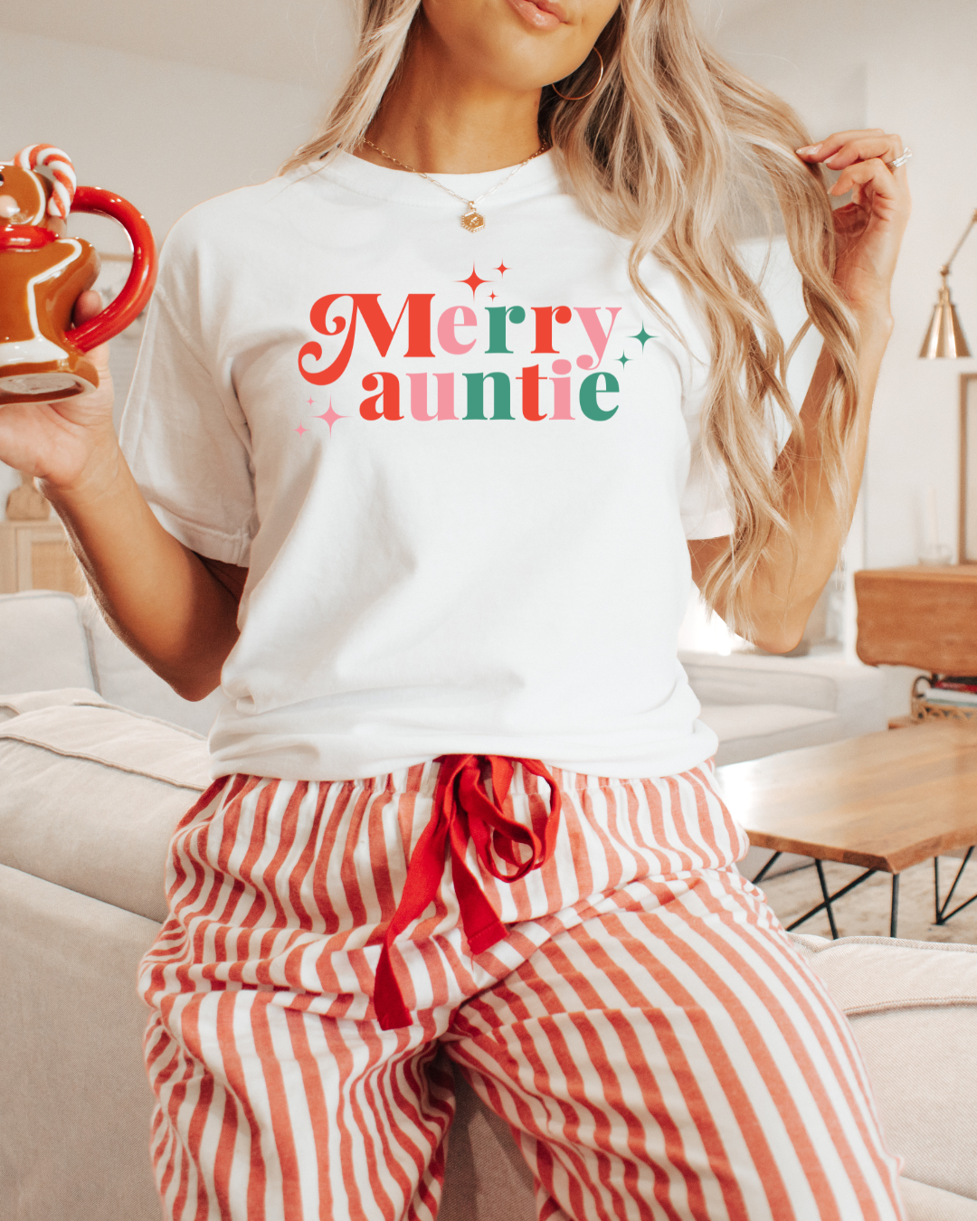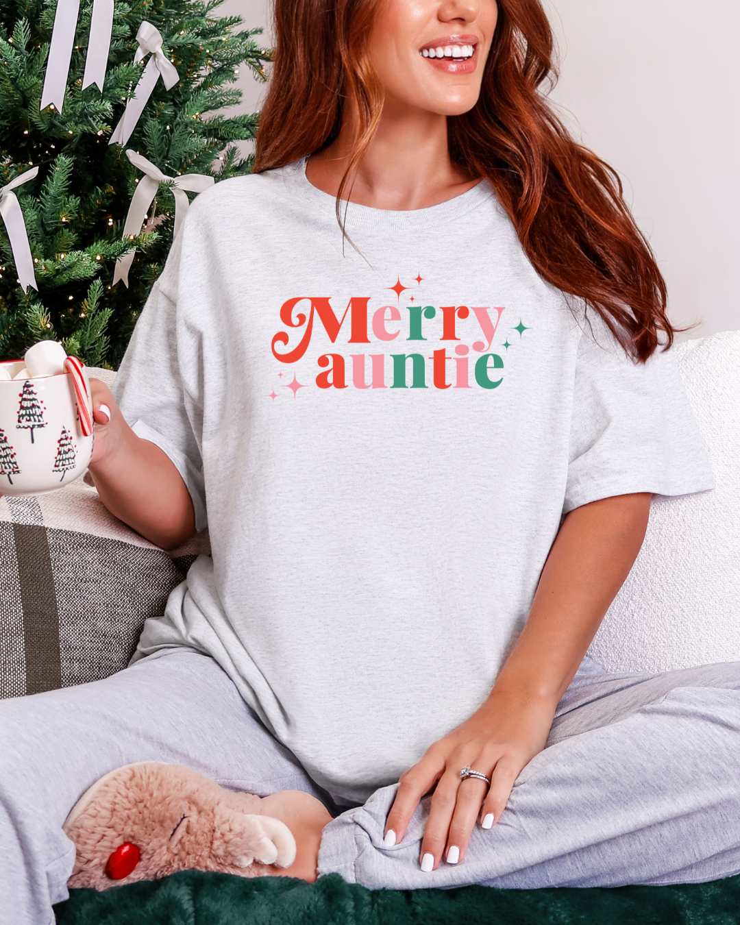 Make the season extra merry with this cute and cozy Merry Mama design. Soft, bright, and full of holiday charm, it features retro inspired colors and festive sparkle details that every mama will love.