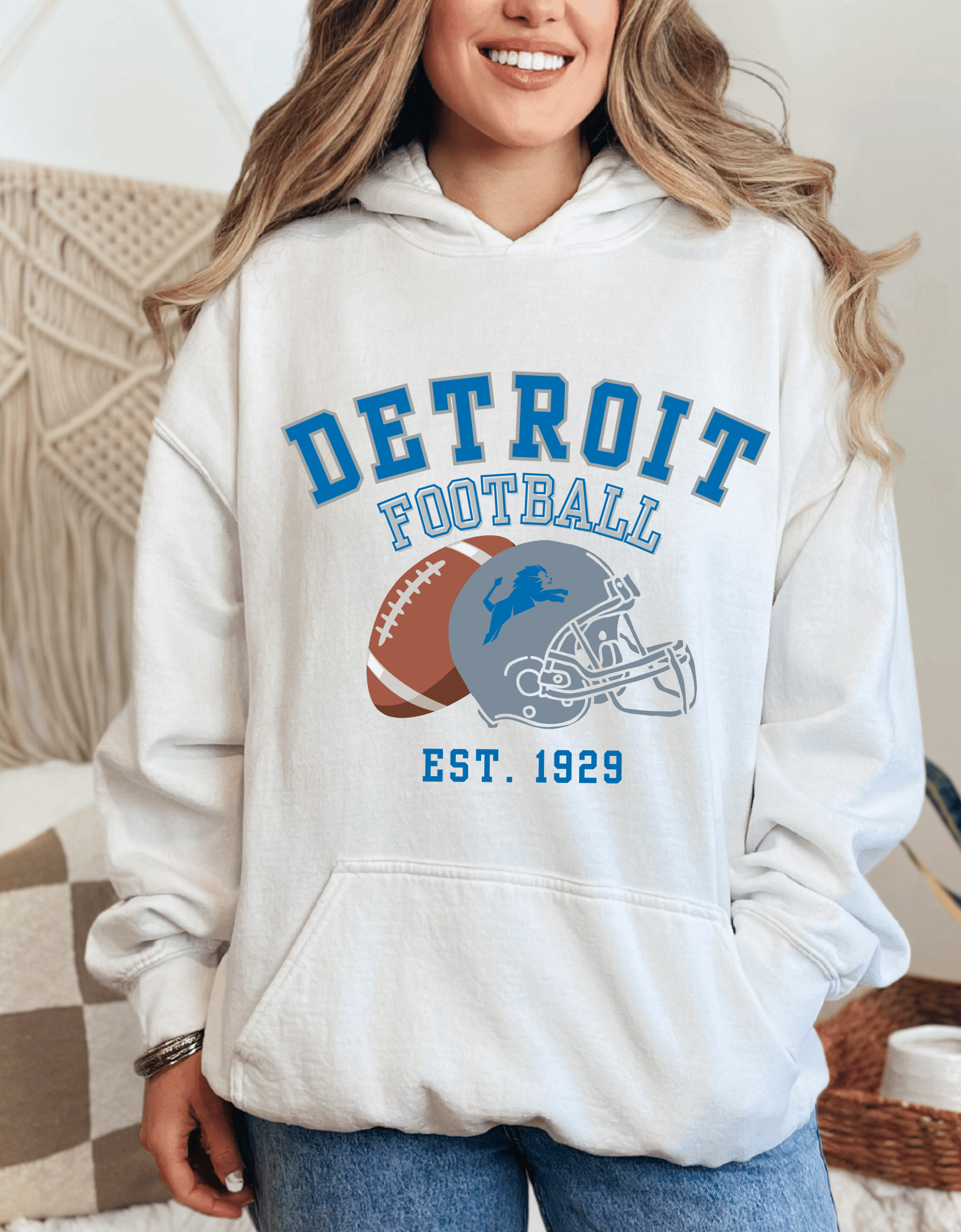 Historical Tribute: Features “Detroit Football” with “Est. 1929” to honor the year the team was established, celebrating its enduring legacy.