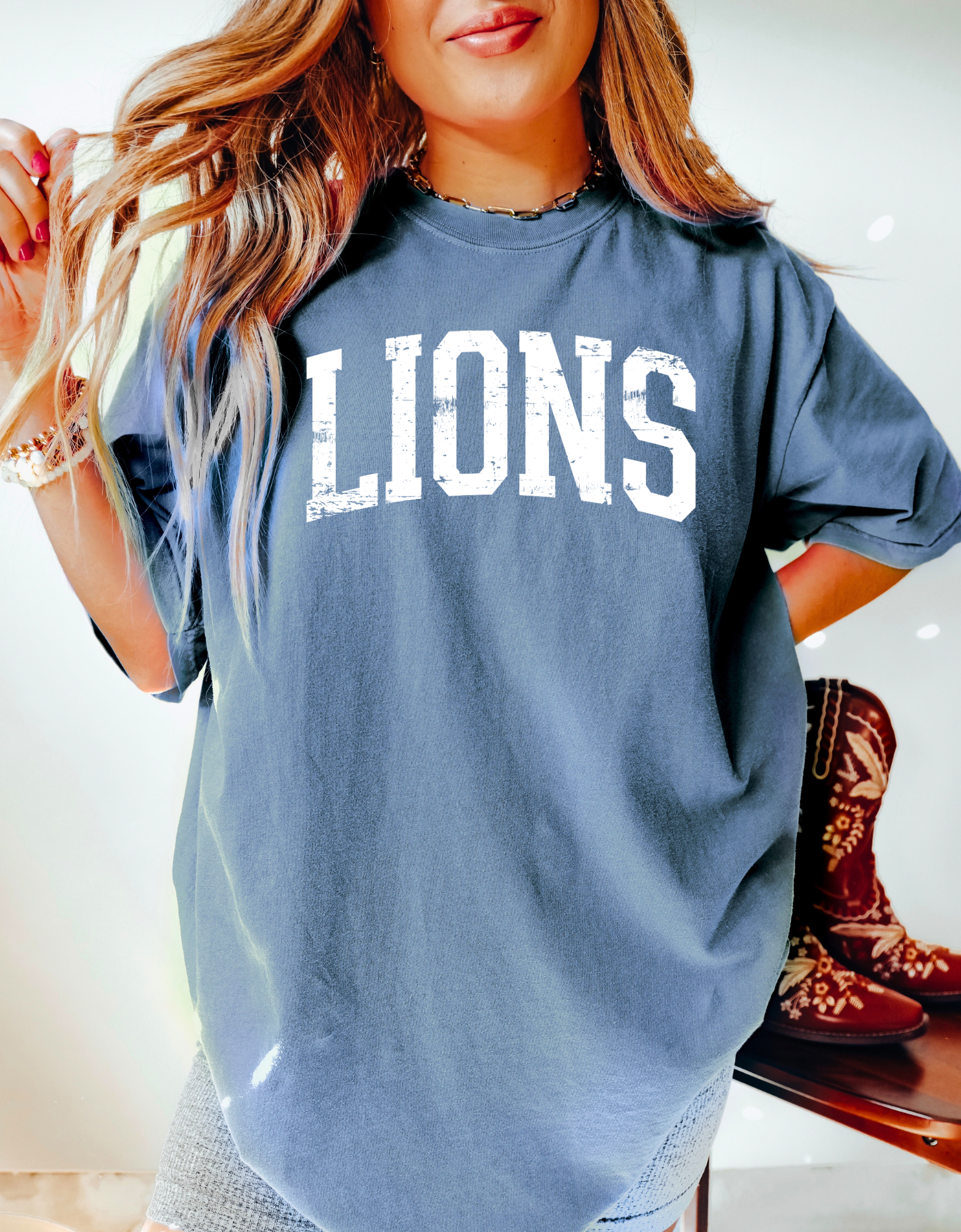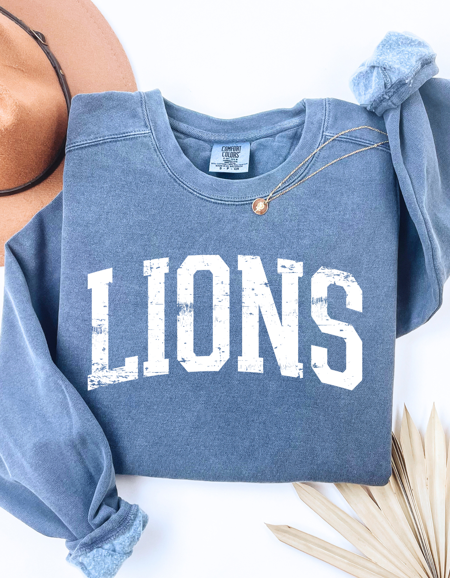 Rep the Lions in ultimate comfort. Our Bold Distressed Tee is made with 100% Comfort Colors cotton for that lived-in, vintage feel you’ll want to wear on repeat.