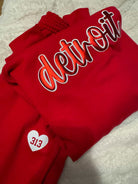 NEW DROP: Red Detroit Script Sparkle + Puff Sweatsuit