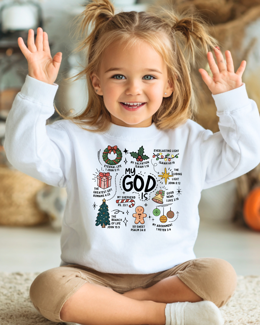 Let your little one proudly share their faith with this adorable “My God Is…” kids’ shirt. Soft, comfy, and full of meaning, it’s the perfect reminder that God is loving, strong, and always with them. Great for church, school, playdates, and everyday wear.
