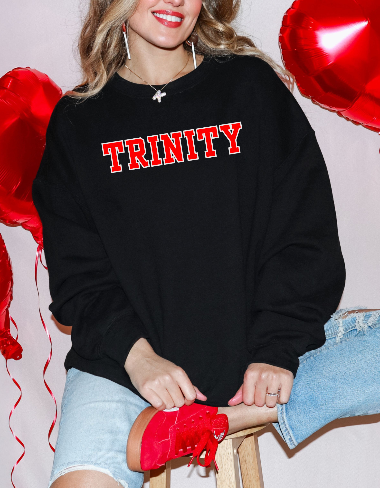 Show your school spirit with our brand new custom Trinity Sparkle Print Crewnecks, Hoodies and Tshirts! Available in youth and adult sizes!