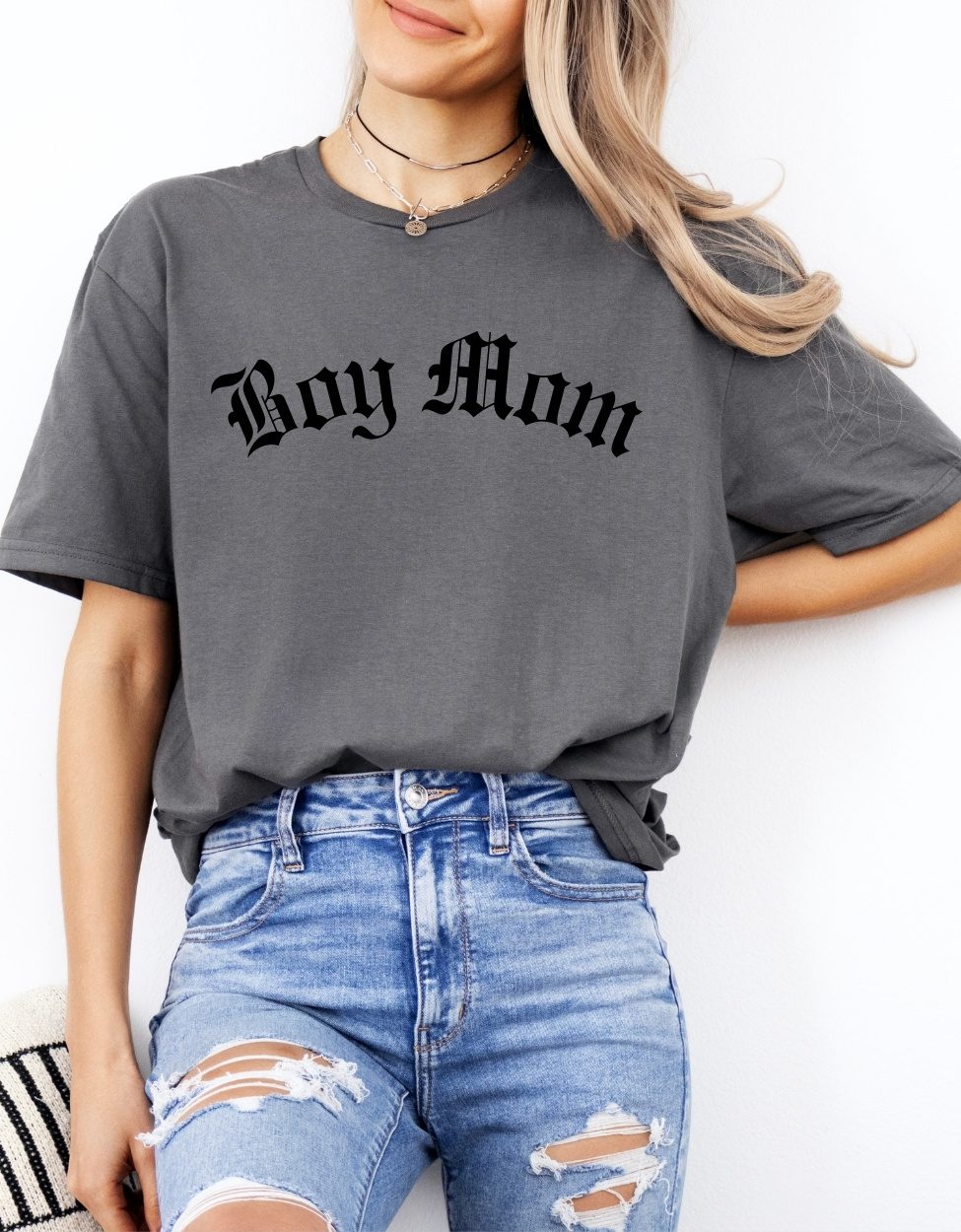 For the mamas chasing muddy shoes, messy hugs, and wild adventures. 🖤 Our Boy Mom design in bold Old English font puts an edgy spin on your everyday boy mama life—because raising kings deserves a little attitude.