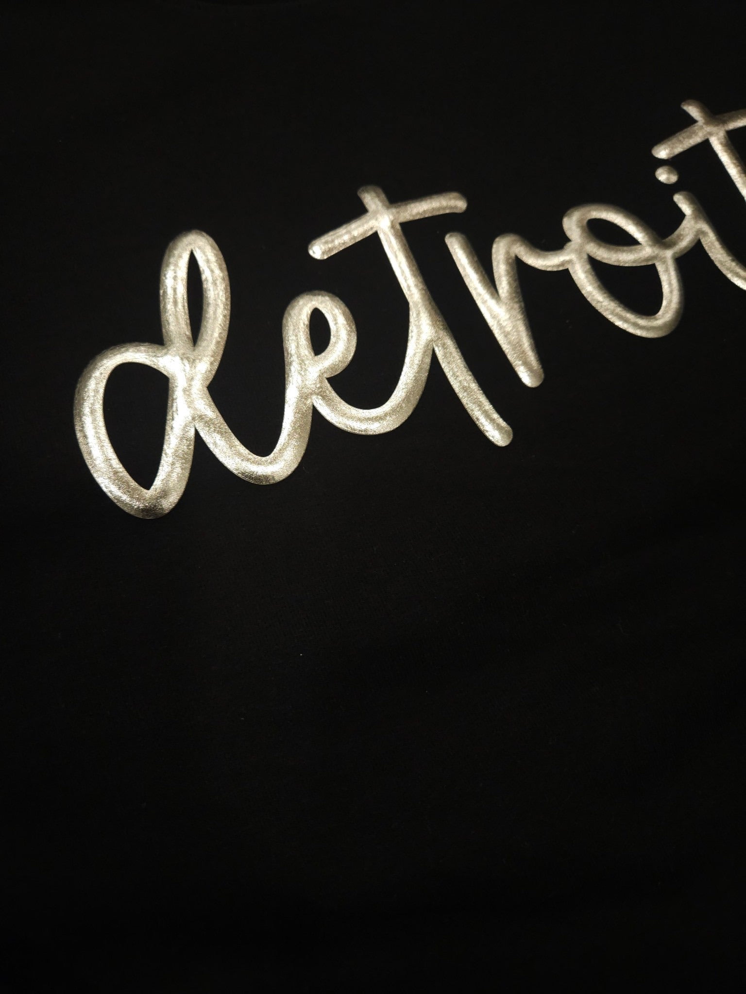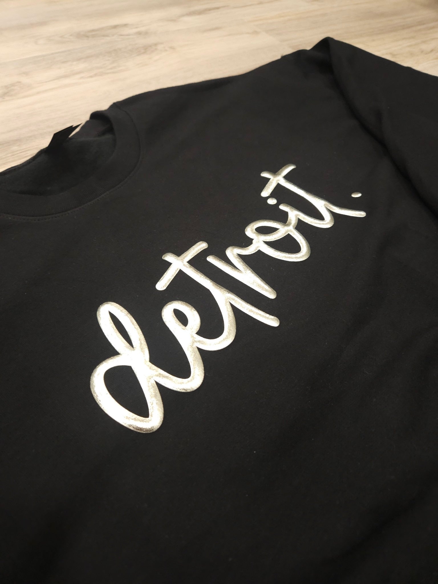 THIS IS SO COOL IN PERSON! Our signature Detroit Script gets a bold upgrade with chrome puff print for a raised, eye-catching shine. Available in Tee, Long Sleeve, Crewneck, and Hoodie, with staple colors Sapphire Blue, Black, Charcoal, and Sport Gray. Built for comfort, designed for Detroit pride.