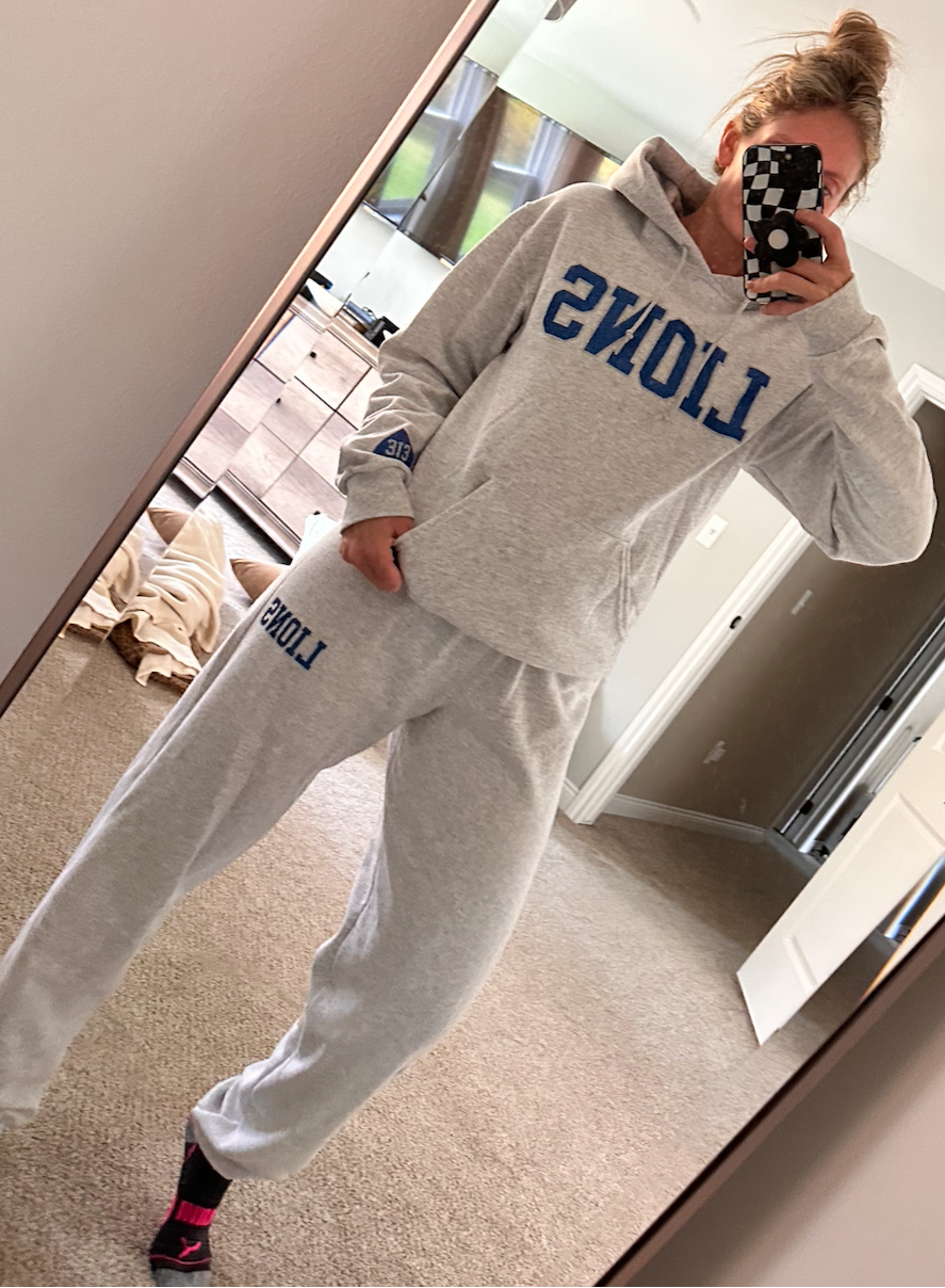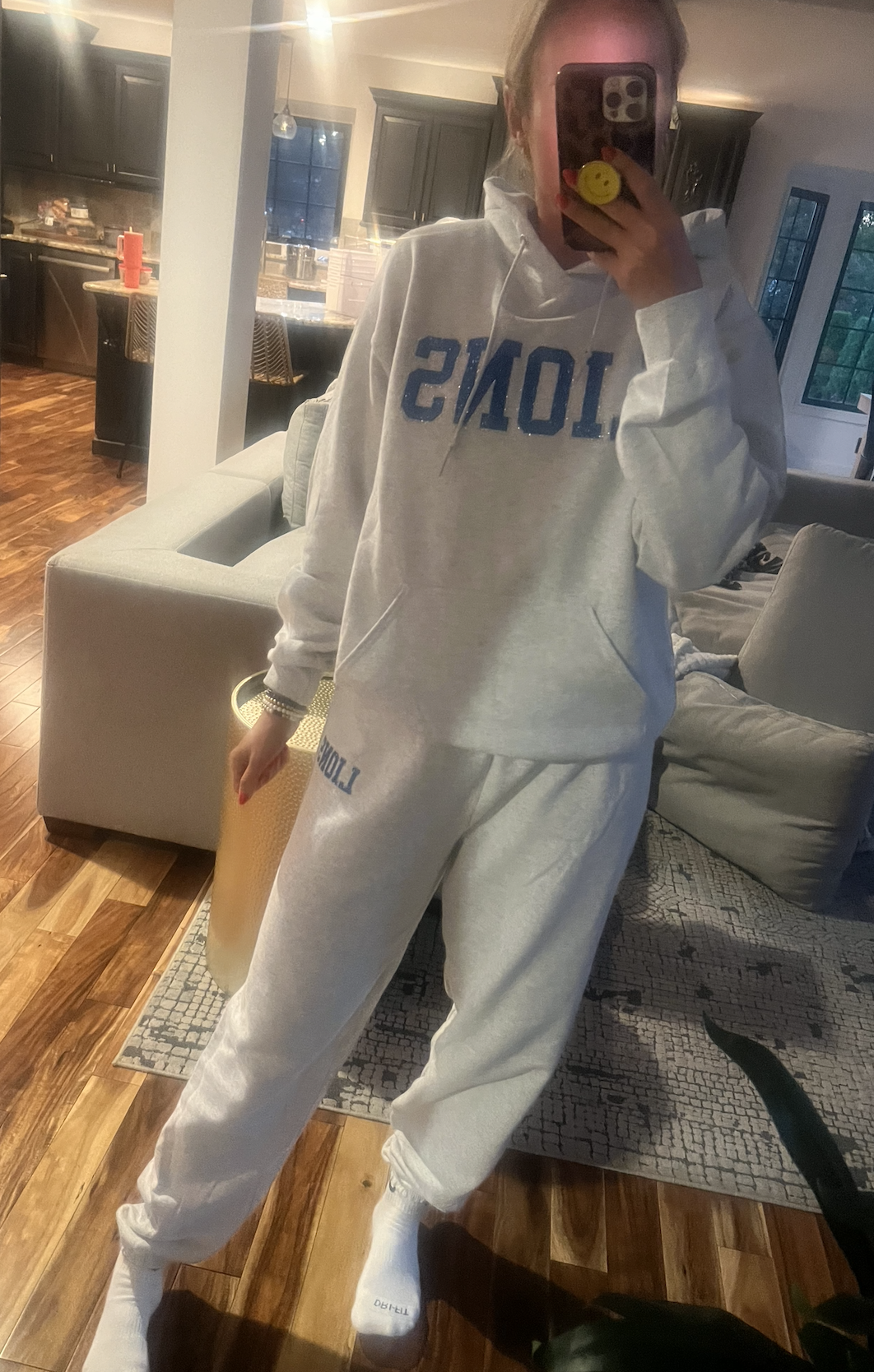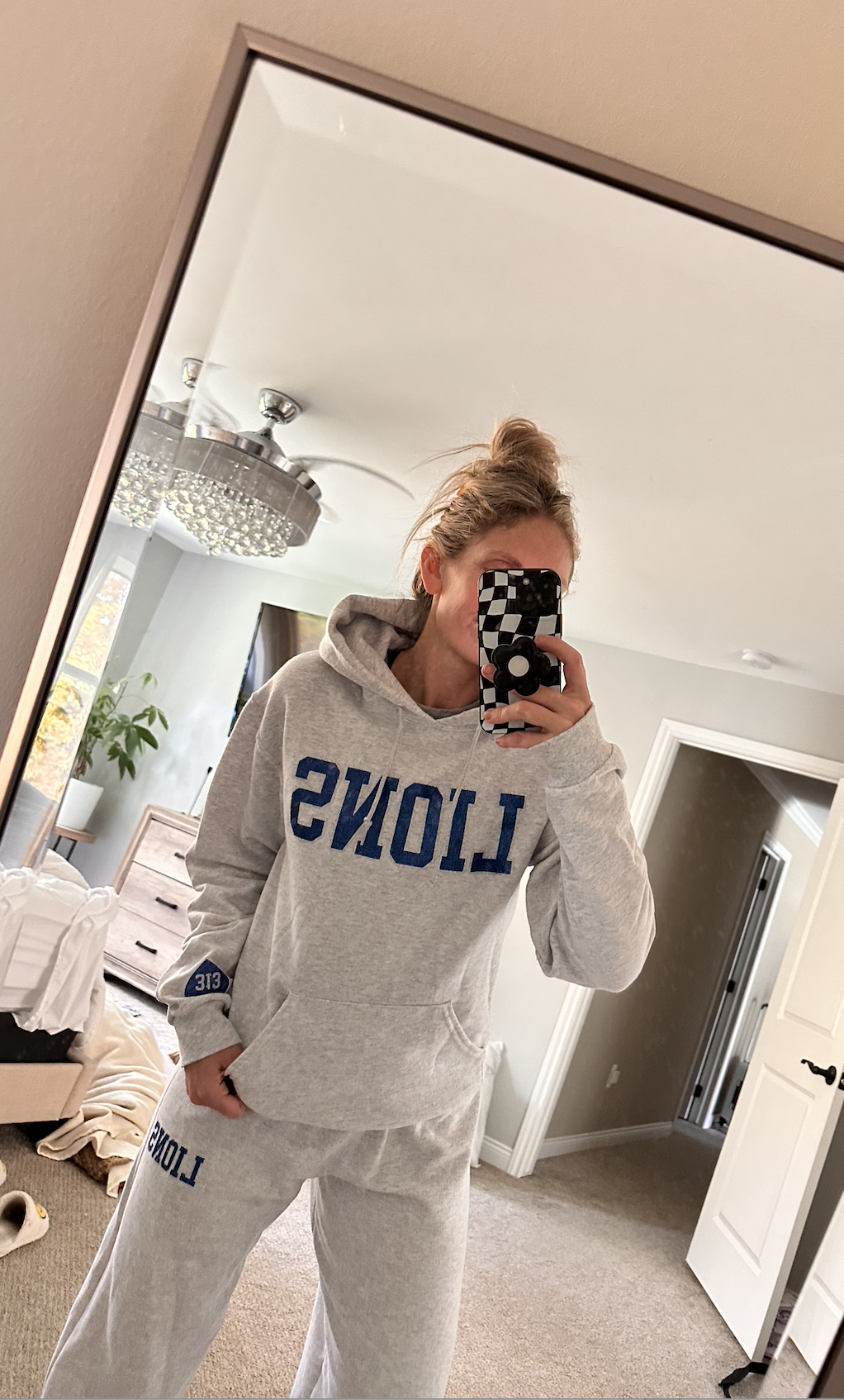 This outfit is PERFECT for a cozy gameday fit!!! Get our signature Lions sparkle logo on it both pants and hoodie. The sizing is OVERSIZED already so no need to size up for it. Get ready for a gameday on the couch in your new favorite lounge set!