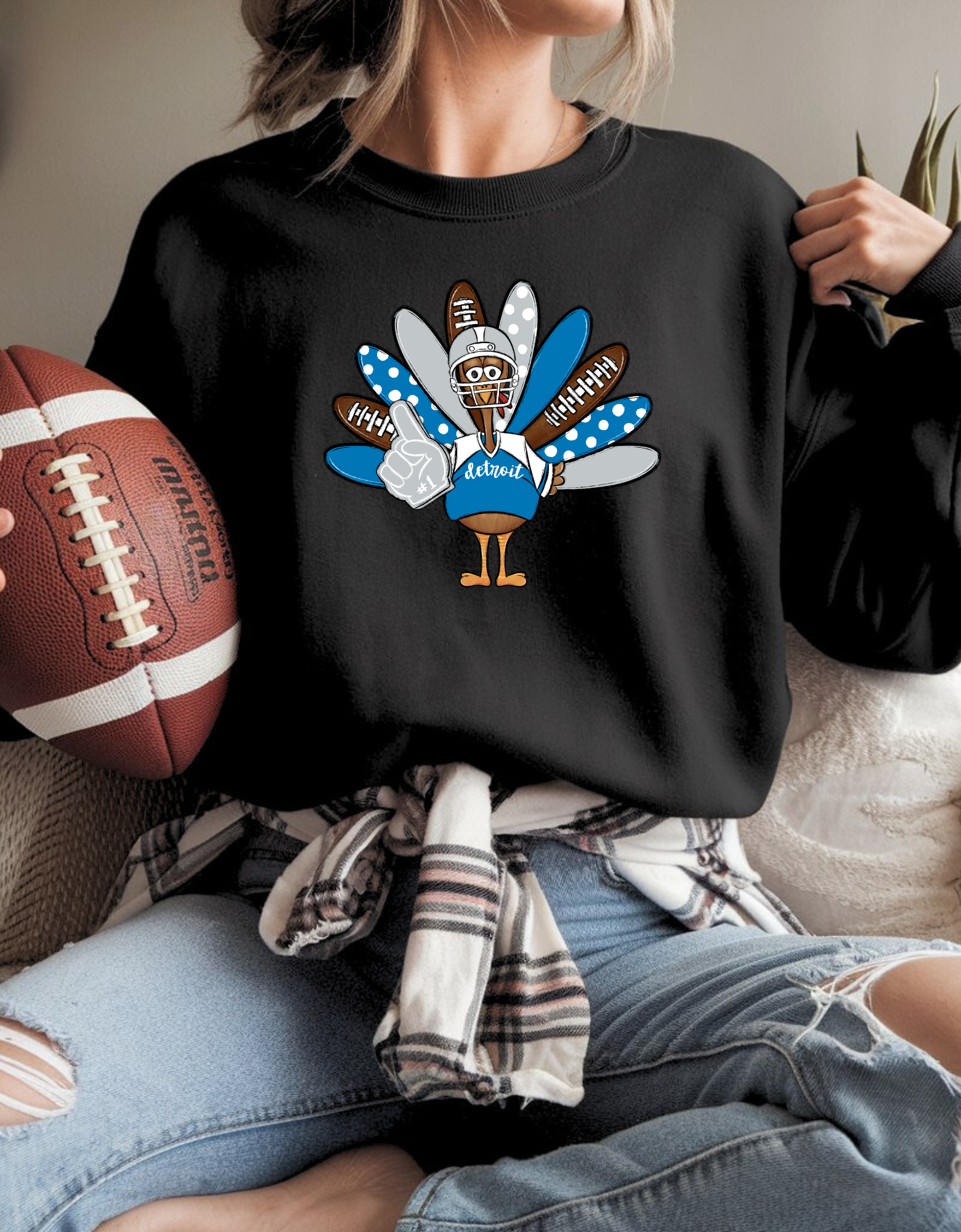 Game day meets turkey day in the most chaotic (and festive) way possible. Our Detroit Football Turkey design brings together your love for football, food, and Detroit pride — all wrapped into one cozy fall favorite. Whether you’re tailgating, watching the Thanksgiving game, or just showing team spirit, this shirt is made to stand out.