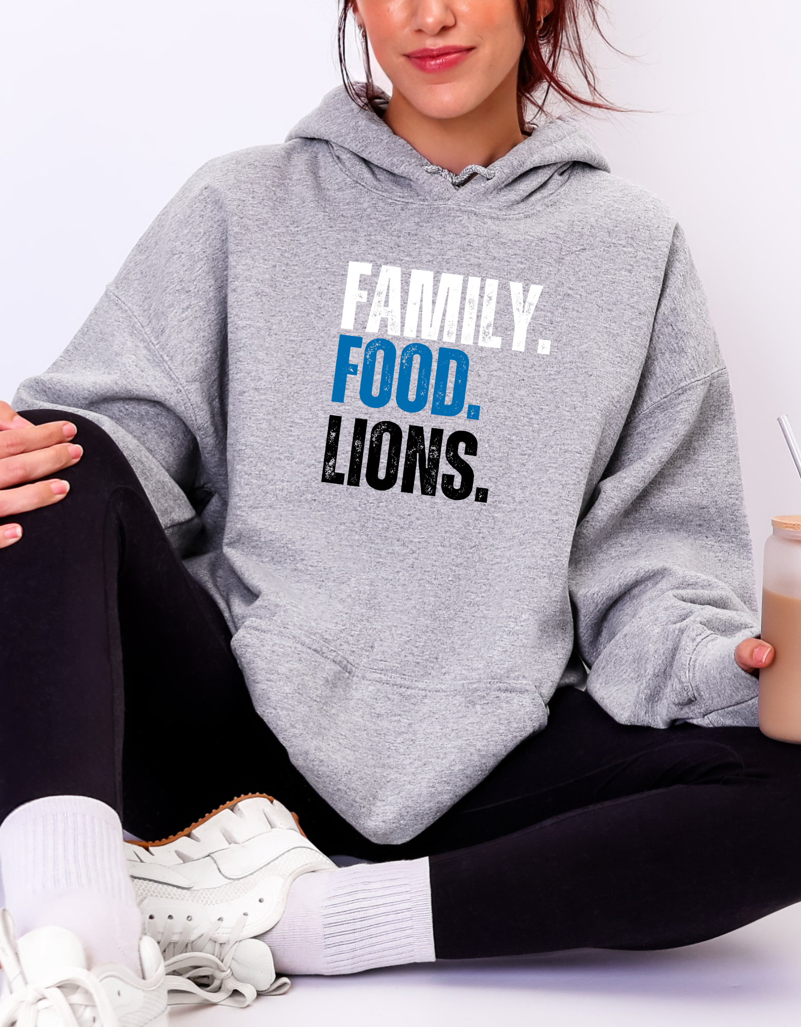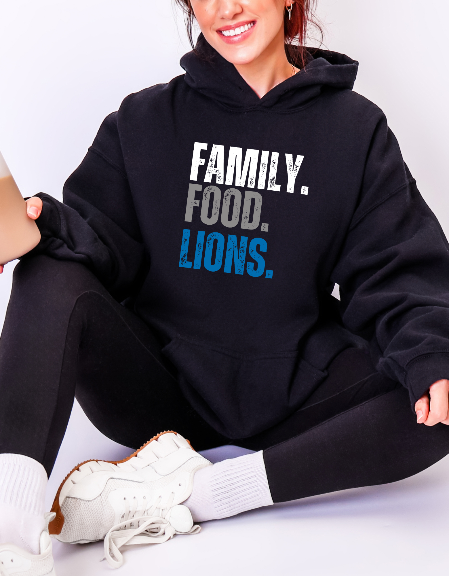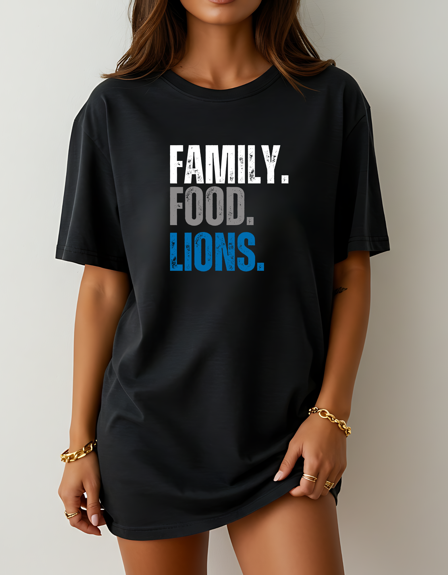 The ultimate Thanksgiving lineup — Family. Food. Lions. Because in Detroit, football isn’t just a game, it’s a tradition. Whether you’re cheering from the couch, the tailgate, or the dinner table, this design is made for every proud fan who knows what the holiday is really about.