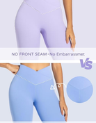 Crossover Flare Leggings with No Front Rise Seams: We took one of your favorite pieces and put every girl's favorite spin on them - NO FRONT SEAM!
