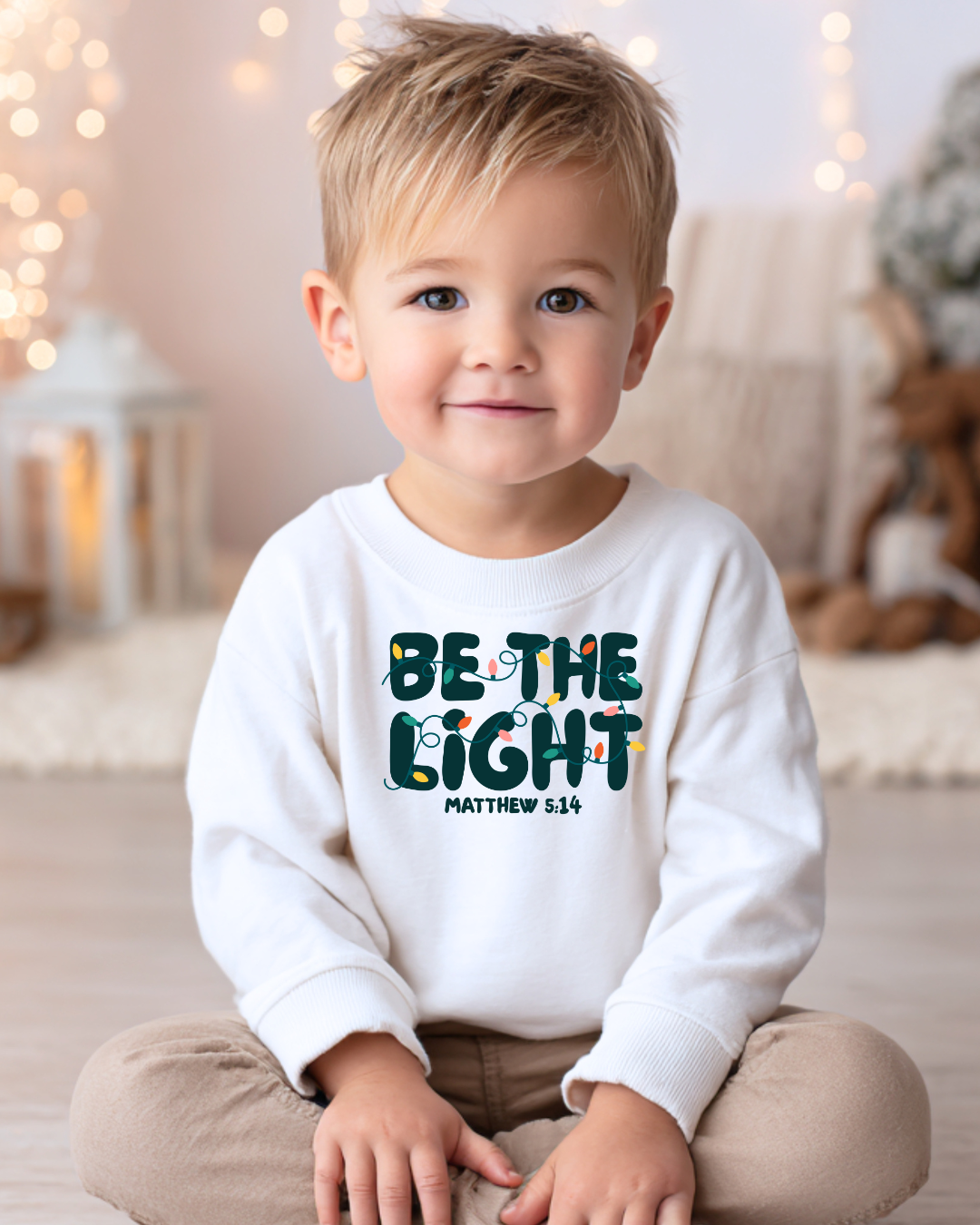 Let your little one proudly share their faith with this adorable 'Be The Light' shirt. Soft, comfy, and full of meaning, it’s the perfect reminder that God is loving, strong, and always with them. Great for church, school, playdates, and everyday wear.