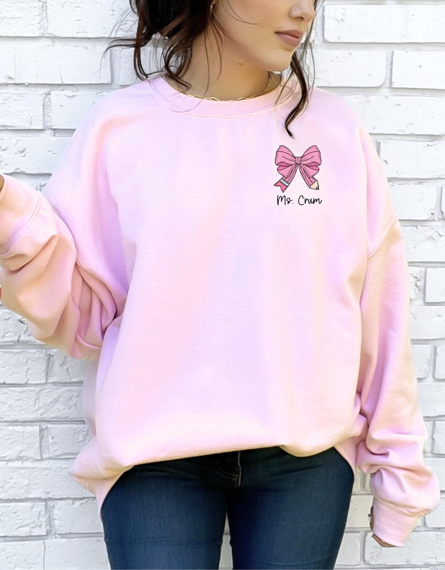 Personalized Teacher Pencil Bow Shirt β Custom Tee or Crewneck